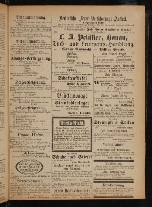 F. A. Pelissier, Hanau, Tuch⸗ und Leinwand-Handlung.