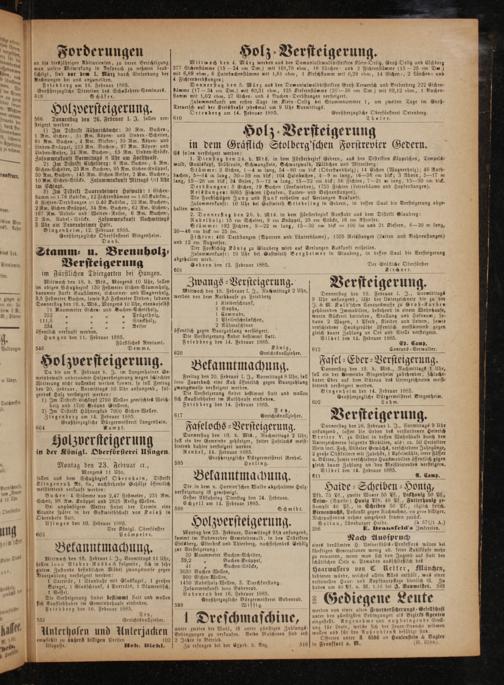 öffentlich verkauft werden. Hungen den 11. Februar 1885. Fürstliches Rentamt. Demme.
