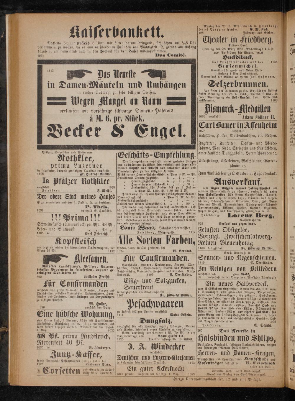 Frtedberg. Lorenz Berg, Kaiserstraße 96. 8²⁵ Verkauf nur getzen baar.