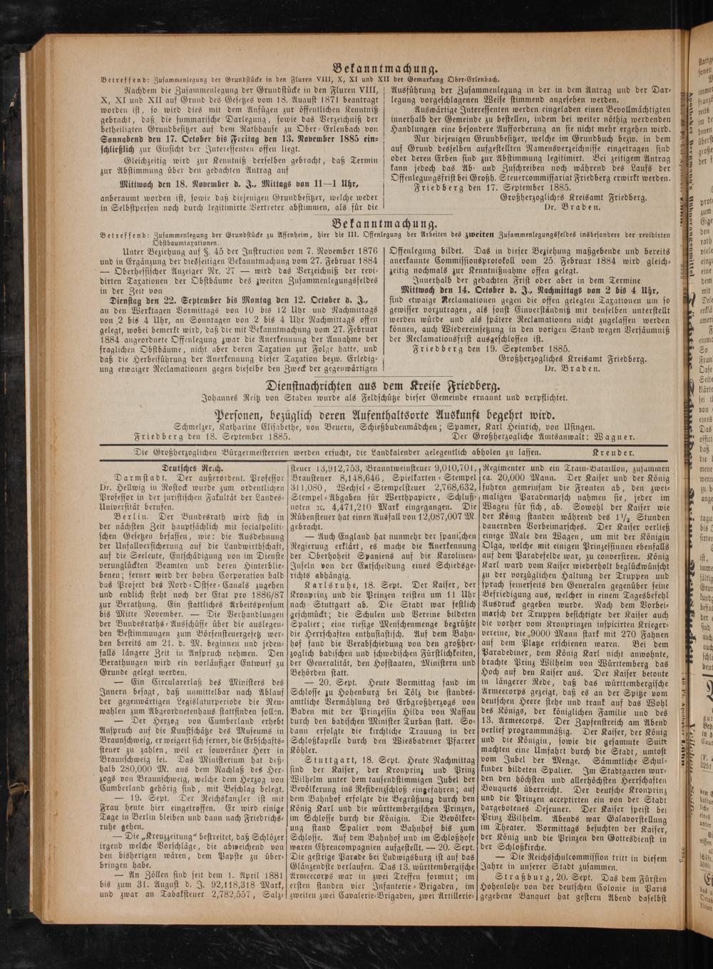 Offenlegungsfrist bei Großh. Steuercommissariat Friedberg erwirkt werden. Friedberg den 17. September 1885.