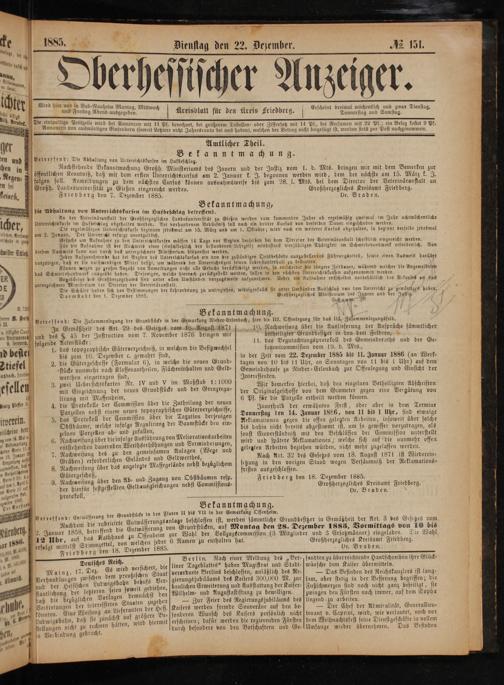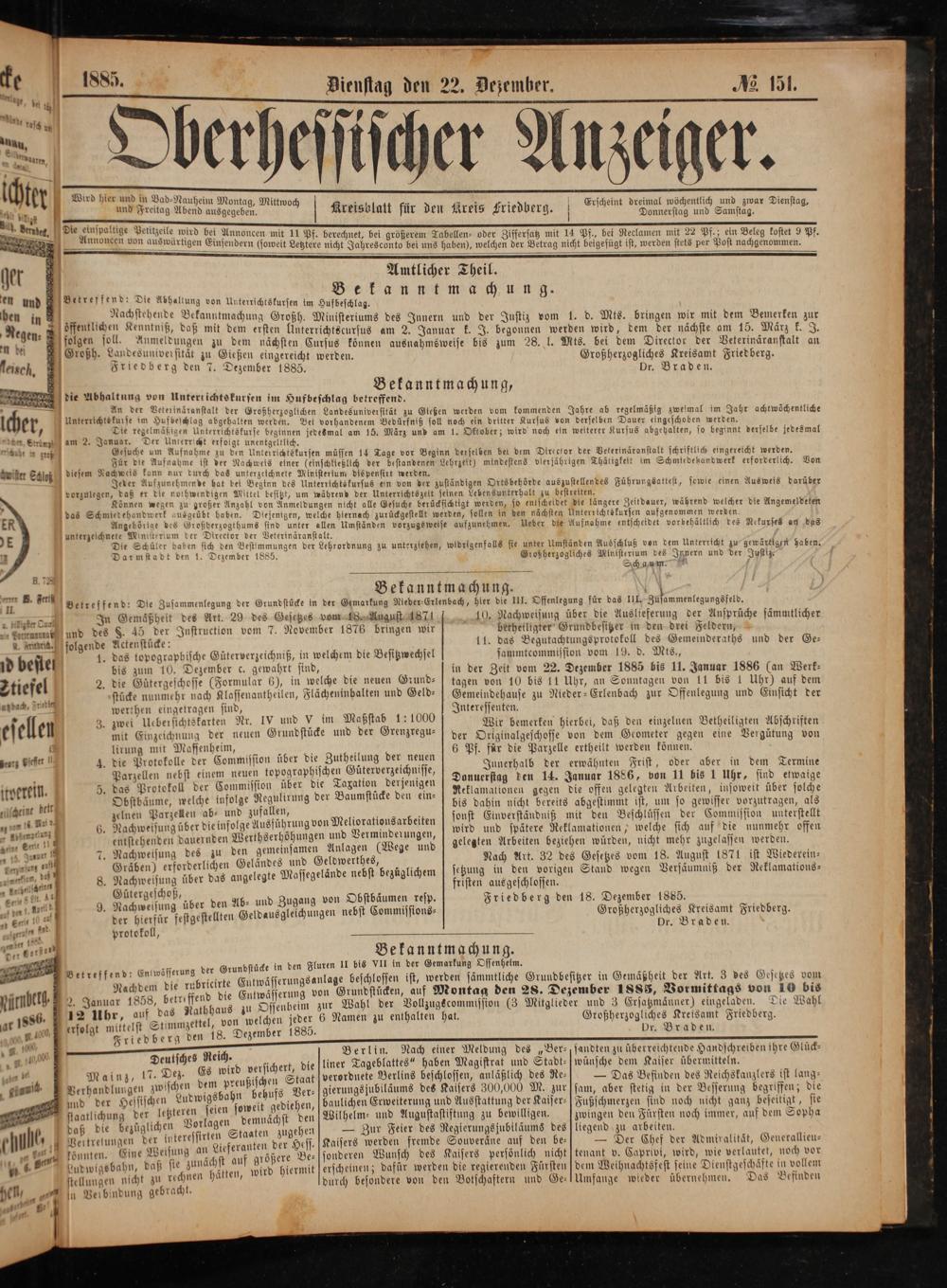 folgen soll. Großh. Landesuniversität zu Gießen eingereicht werden. Friedberg den 7. Dezember 1885.