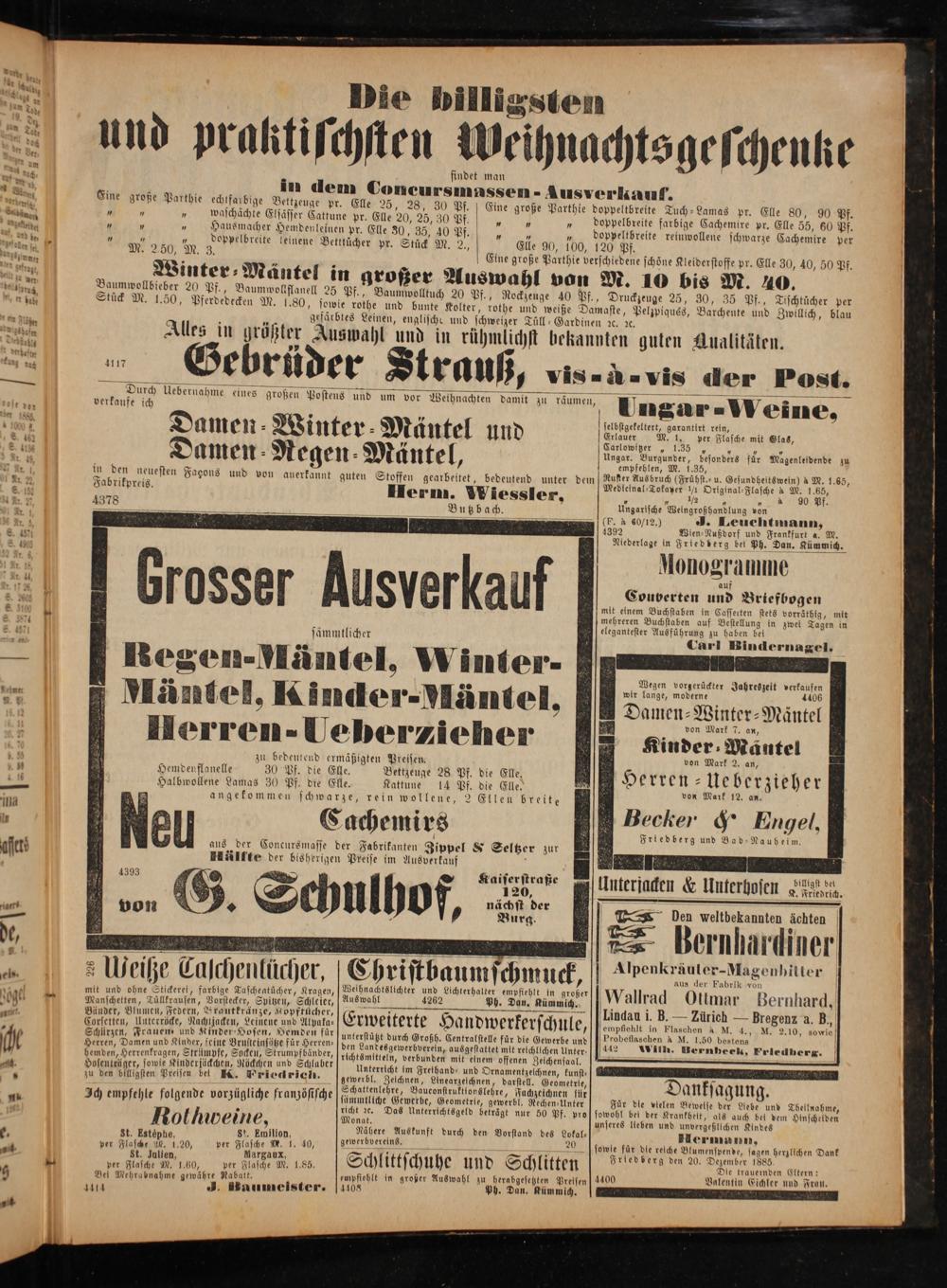 aus der Concursmasse der Fabrikanten Zippel& Seltzer zur Hälfte der bisherigen Preise im Ausverkauf