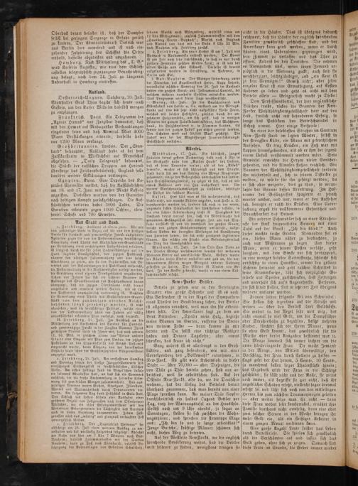 Egypten. Kairo. Eine Depesche des Ka— pitäns Chermside meldet, daß die Aufständischen am 16. und 17. Juni mit großer Macht Kassala angriffen. Dieselben wurden von der Garnison nach heftigem Kampfe zurückgeschlagen. Die Auf— ständischen verloren dabei 3000 Todte. Die Garnison erbeutete gegen 1000 Ochsen, eben— soviel Schafe und 700 Gewehre.