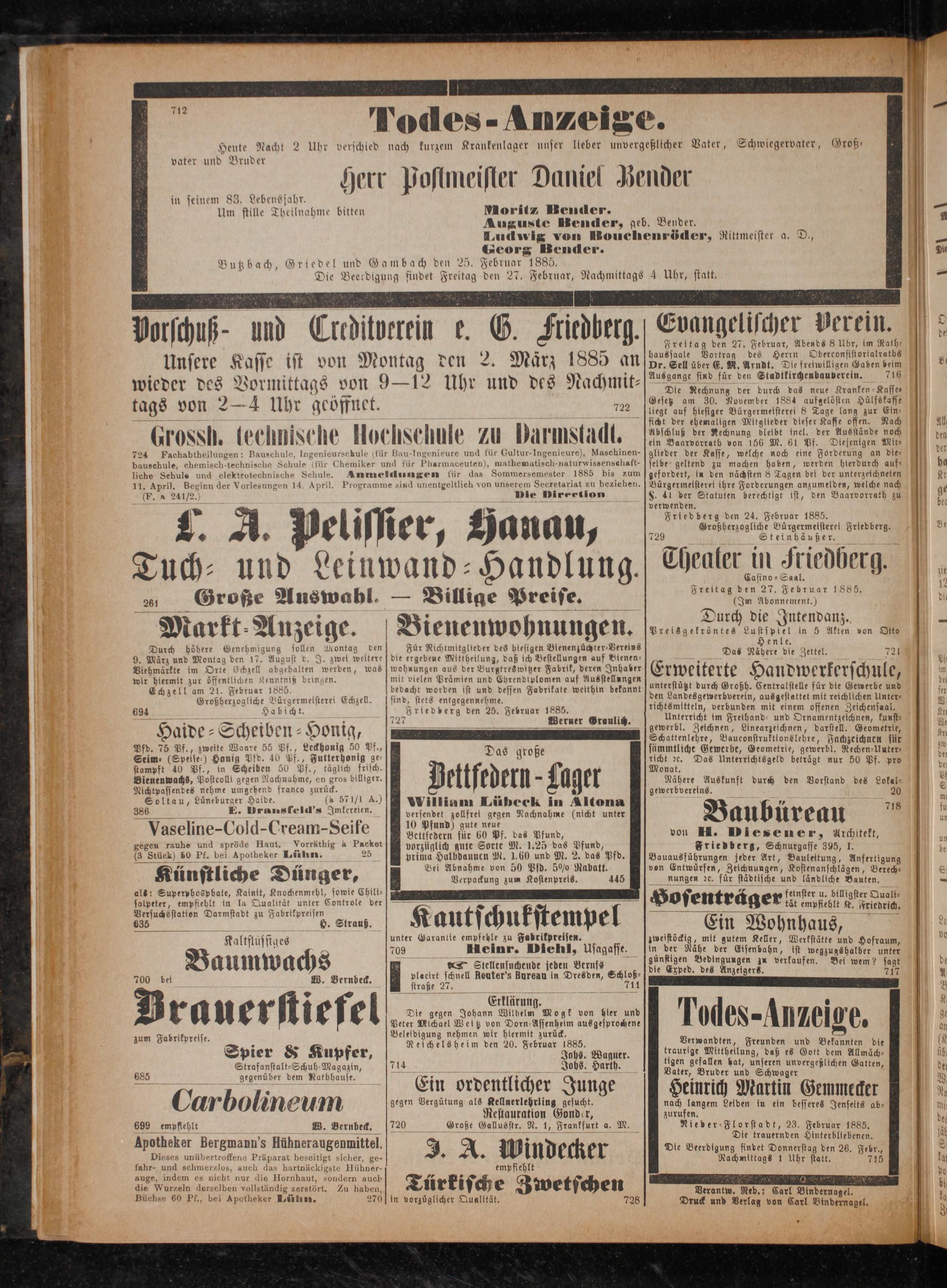 Die Beerdigung findet Donnerstag den 26. Febr., Nachmittags 1 Uhr statt. 715
