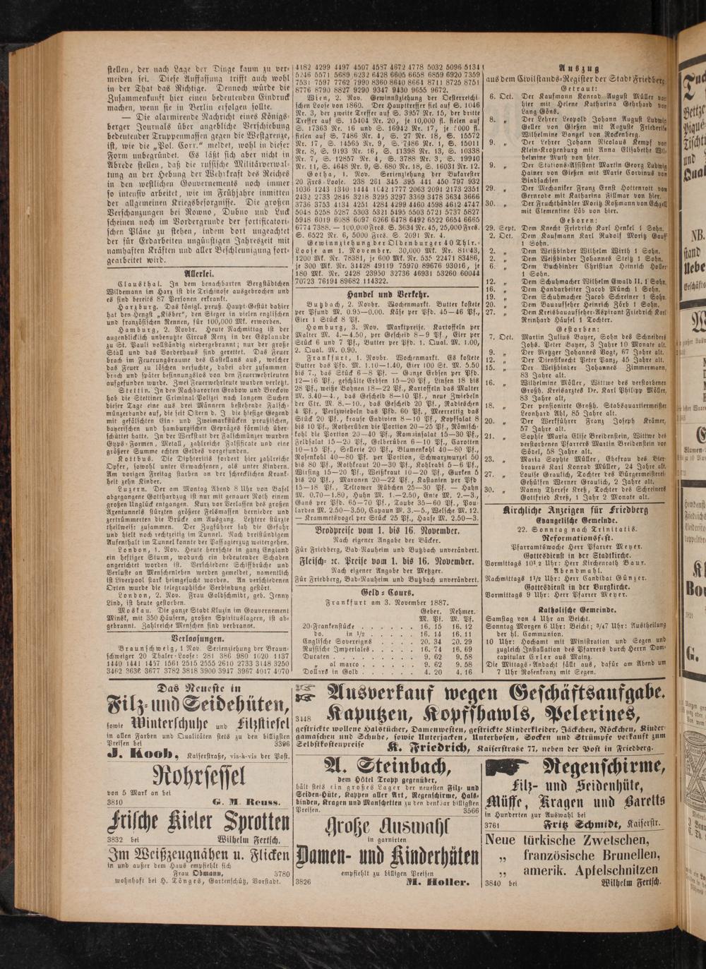 Kirchliche Anzeigen für Friedberg Evangelische Gemeinde. 22. Sonntag nach Trinitatis. Reformationsfest. Pfarramtswoche Herr Pfarrer Meyer. Gottesdienst in der Stadtkirche. Vormittags 101,2 Uhr: Herr Kirchenrath Baur. Abendmahl. Nachmittags 1½ Uhr: Herr Candidat Günzer. Gottesdienst in der Burgkirche.