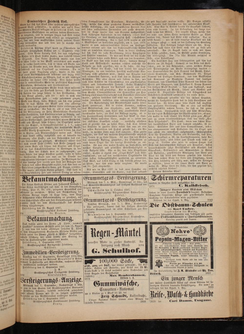 i meisibletend versteigert werden. Friedberg den 5. September 1887.