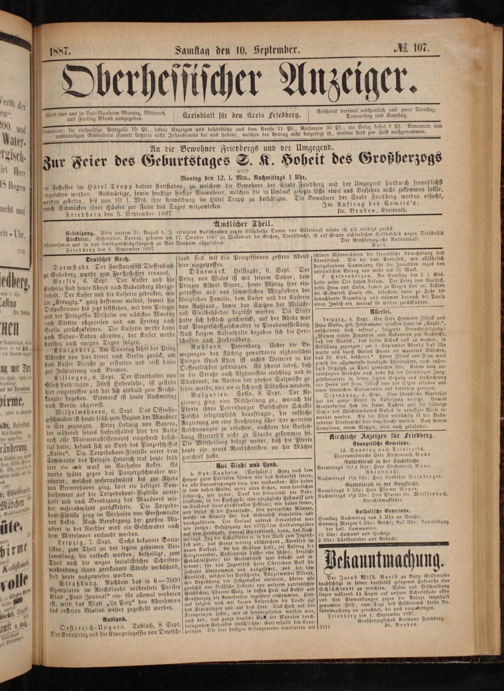 Friedberg den 1. September 1887.