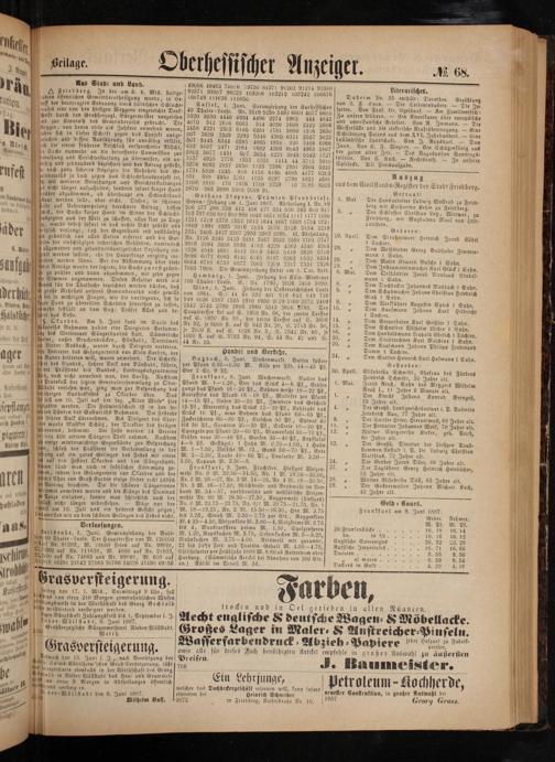 Aus Stadt und Land. Friedberg. In der am 6. d. abten öffentlichen Gemeinderathssitzung wurde, in Be⸗ eff der beantragten Erbauung eines städtischen Schlacht— LgLuses eine von den hlesigen Metzgern eingereichte Denk— bFrift durch den Großherzogl. Bürgermeister vorgelesen nd zur Kenntniß des Gemeinderaths gebracht. Die ketzger, von denen viele als Zuhörer anwesend waren, aben sich in dieser Schrift gegen das Projekt aus ge⸗
