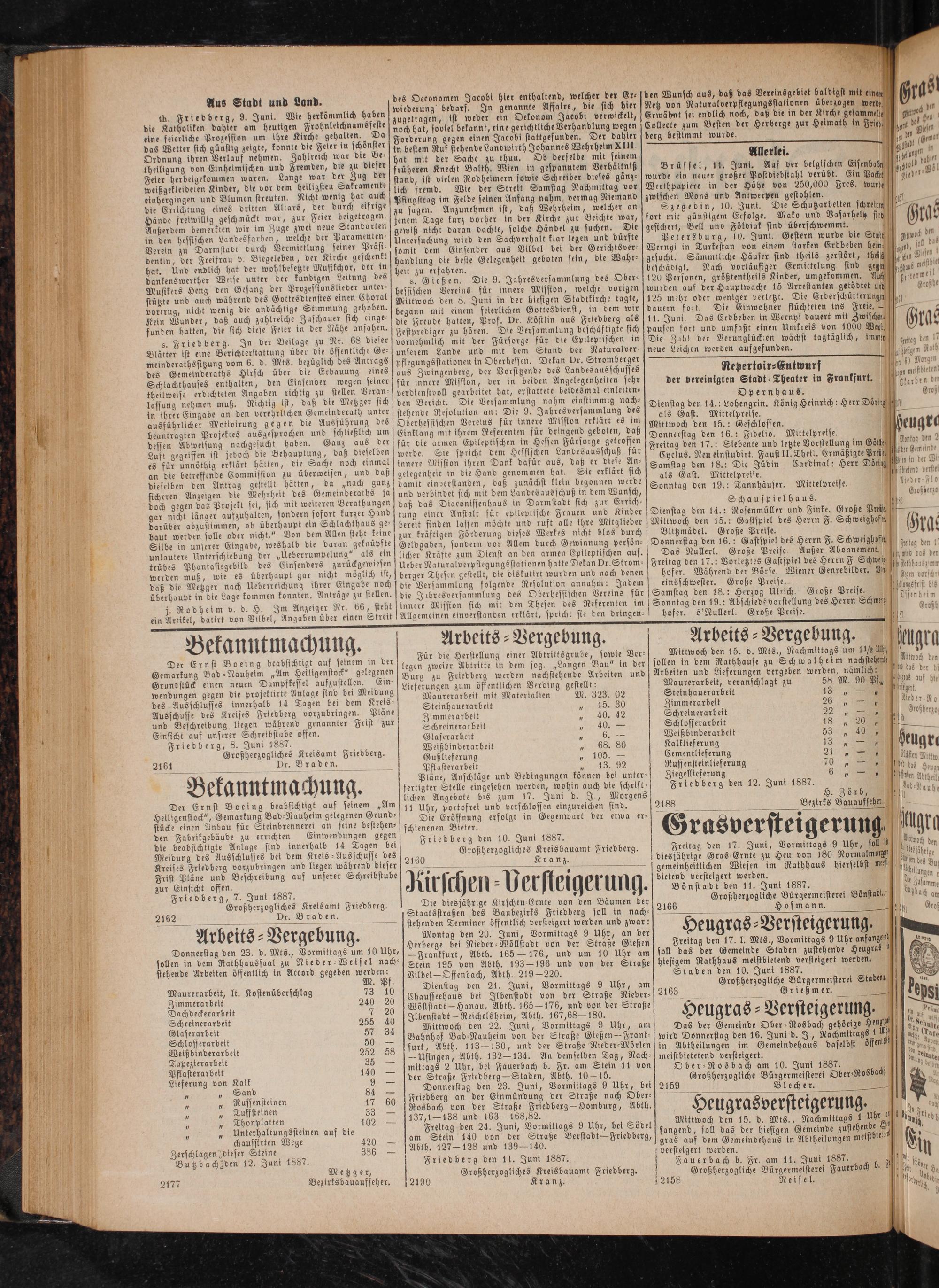 Friedberg den 11. Juni 1887. Großherzogliches Kreisbauamt Friedberg. Kranz.