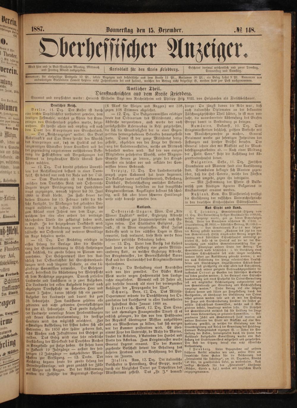 Wird hier und in Bad⸗Nauheim Montag, Mittwoch und Freitag Abend ausgegeben.