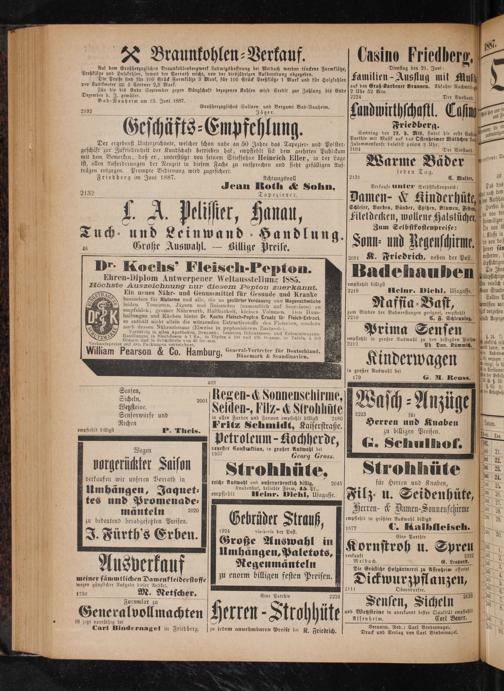 Friedberg im Juni 1887. Achtungsvoll 8 Jean Roth& Sohn, 2132 T apezierer.
