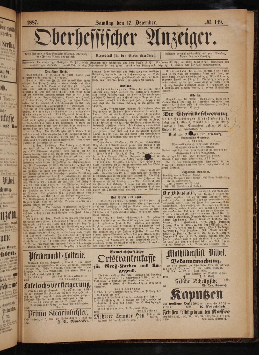 Groß⸗Karben den 13. Dezember 1887. Der Vorstand.