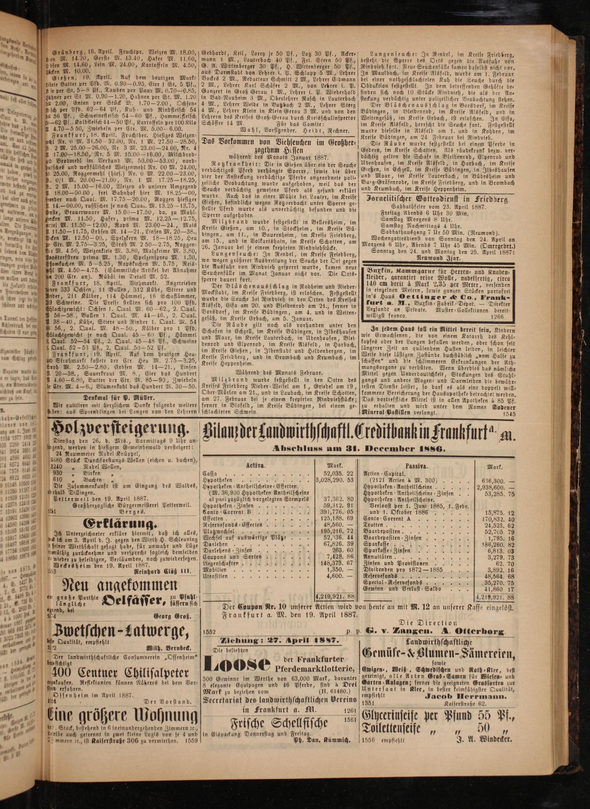 Bilanz der Candwirthschaffl. Creditbank in Frankfurtam.