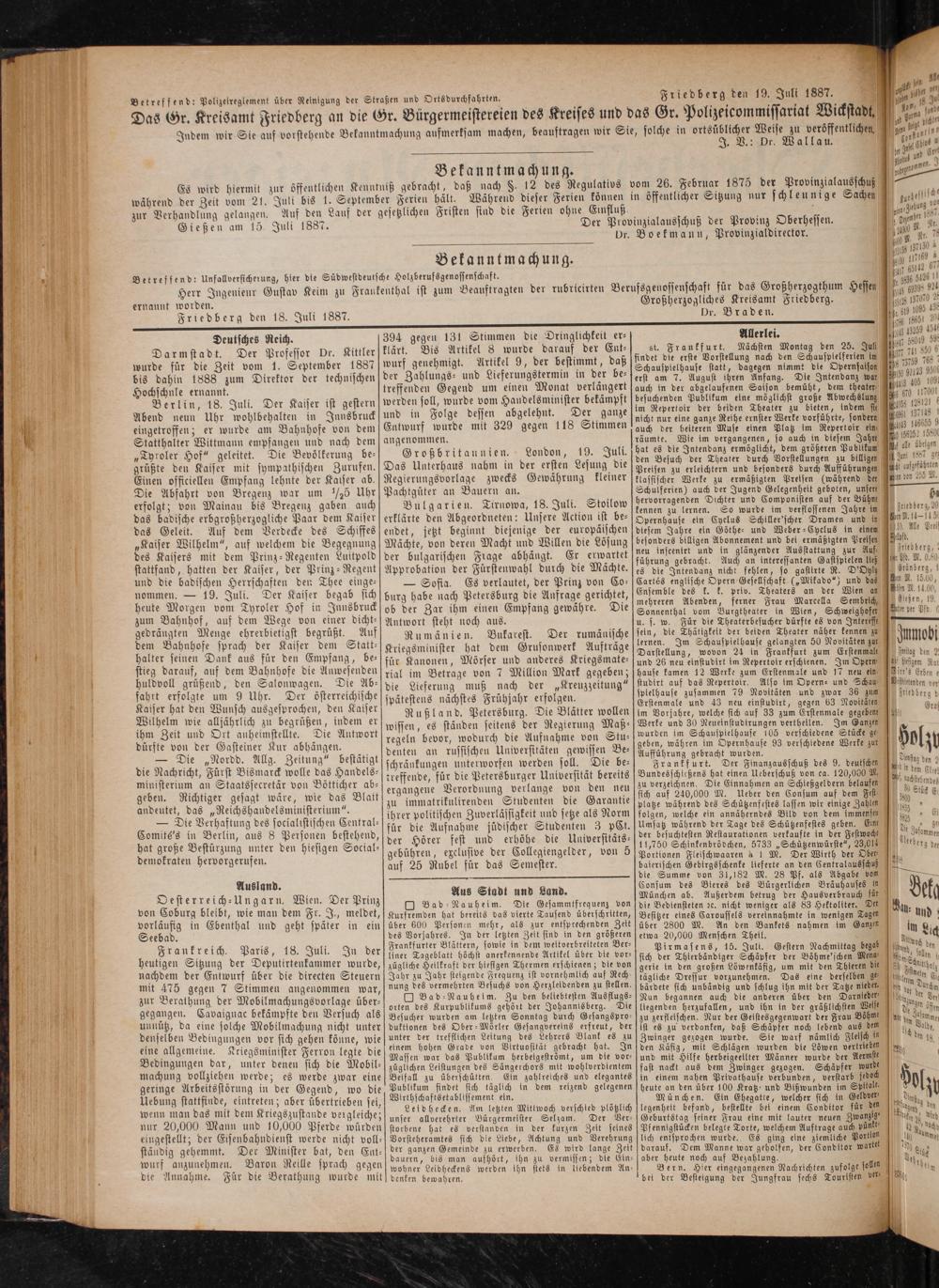 Friedberg den 19. Juli 1887.