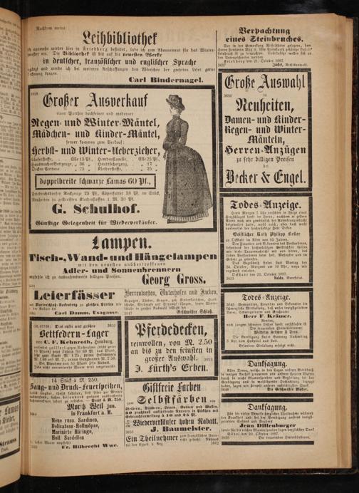 Herr F. Krämer., ö Rentier, nach langem schweren Leiden sanft entschlafen ist Die trauernden Hinterbliebenen: Wilhelm Krämer& Frau. Die Beerdigung findet Sonntag Nachmittag 3 Uhr vom Hospital aus statt. Besondere Einladung erfolgt nicht.