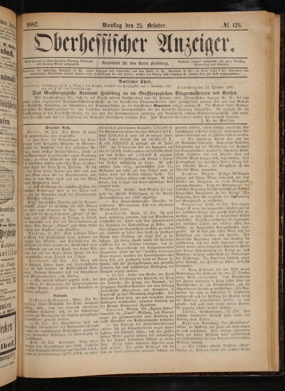 Das Großherzogliche Kreisamt Friedberg an die Großherzoglichen Bürgermeistereien des Kreises.