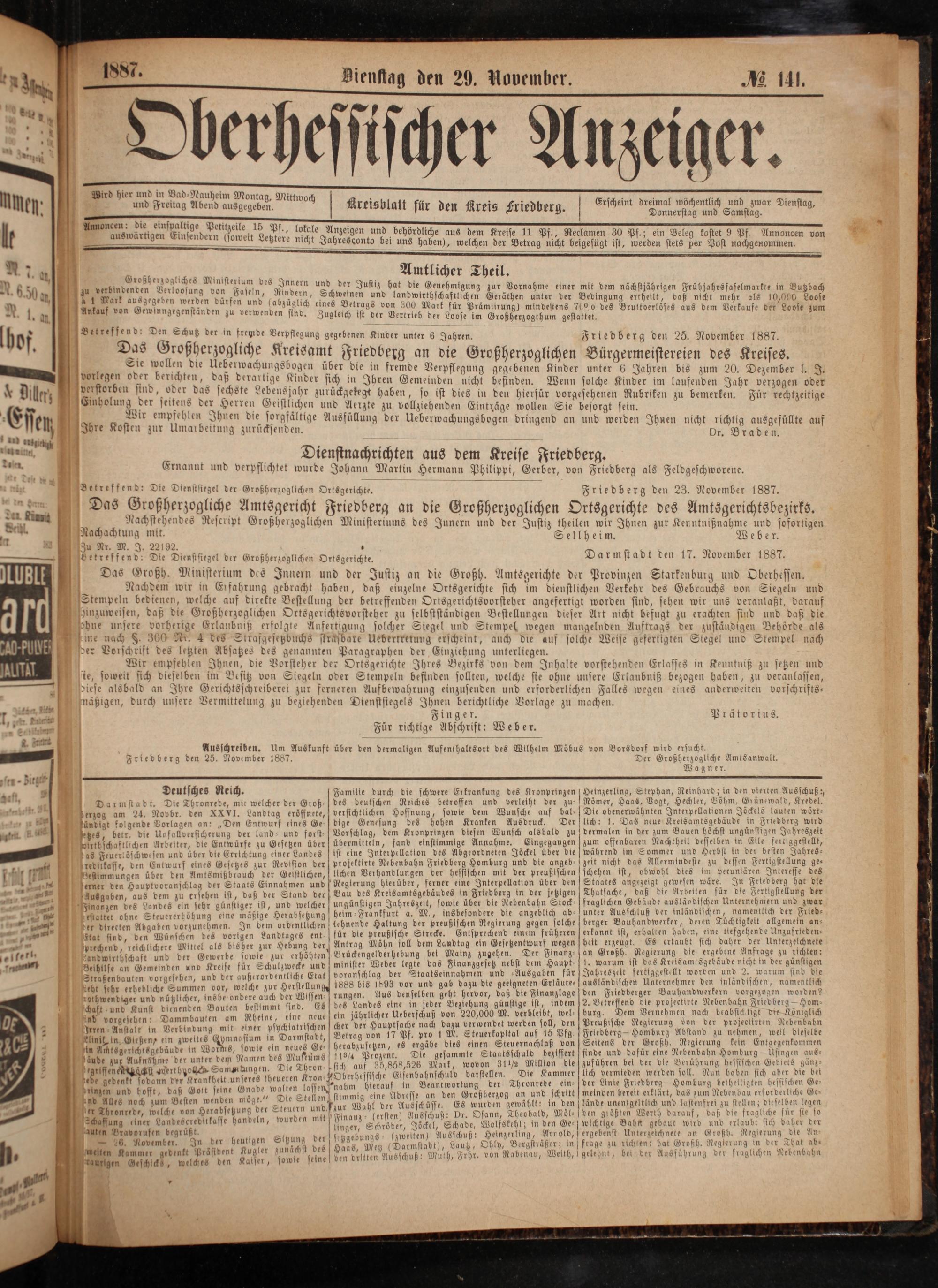 Friedberg den 23. November 1887.