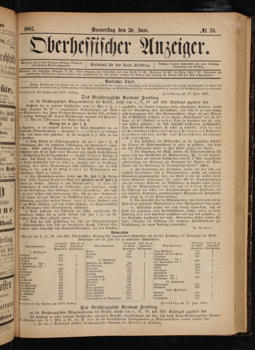 Das Großherzogliche Kreisamt Friedberg an die Großherzoglichen Bürgermeistereien des Kreises, welche dem I., II., IV. und XIII. Wahlbezük zugetheilt sind. Im Anschluß an unser heutiges Ausschreiben rubricirten Betreffs, benachrichtigen wir Sie, daß durch Erlaß Großherzoglichen Staats⸗