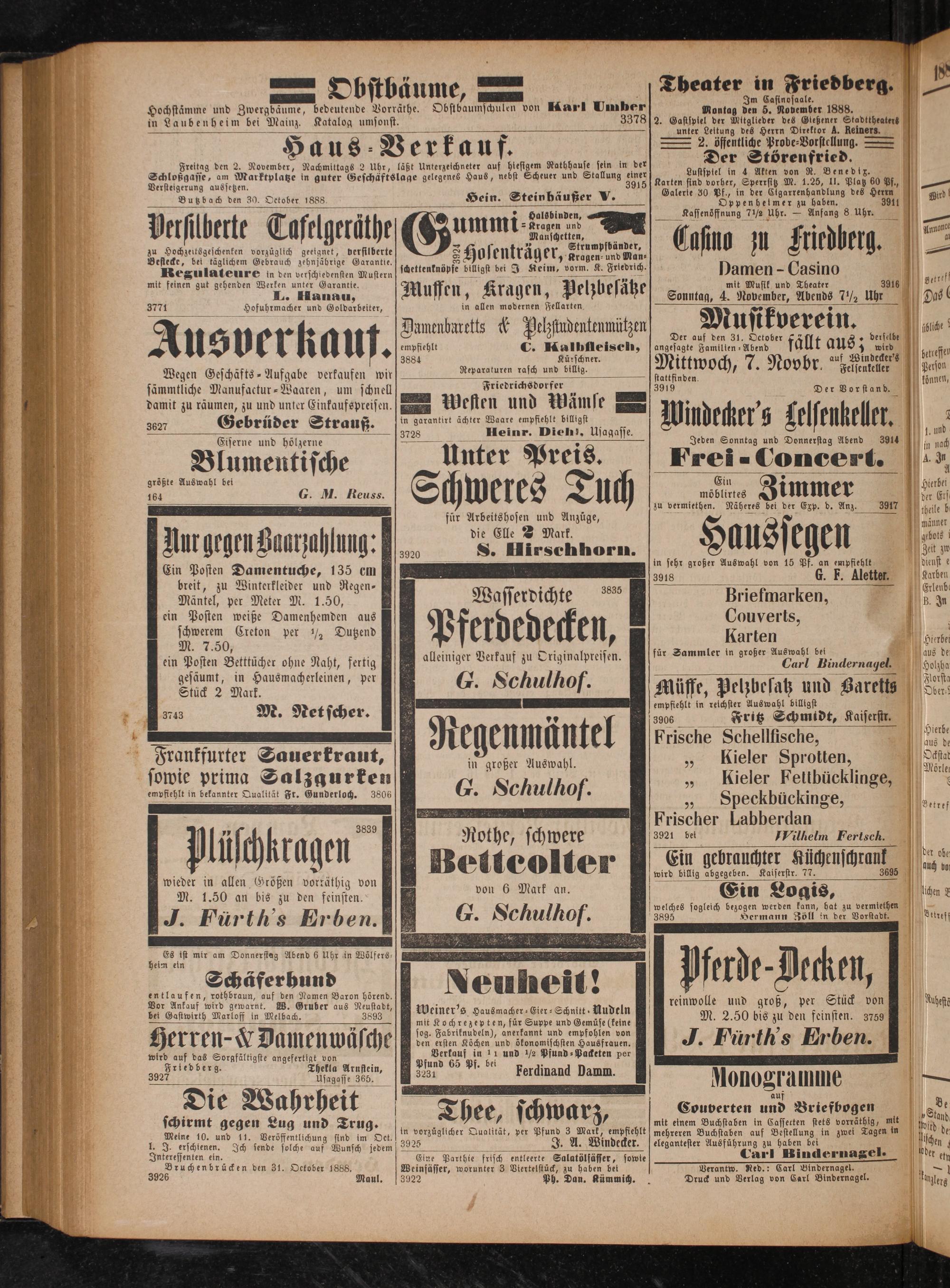 Verantw. Red.: Carl Bindernagel. Druck und Verlag von Carl Bindernagel.