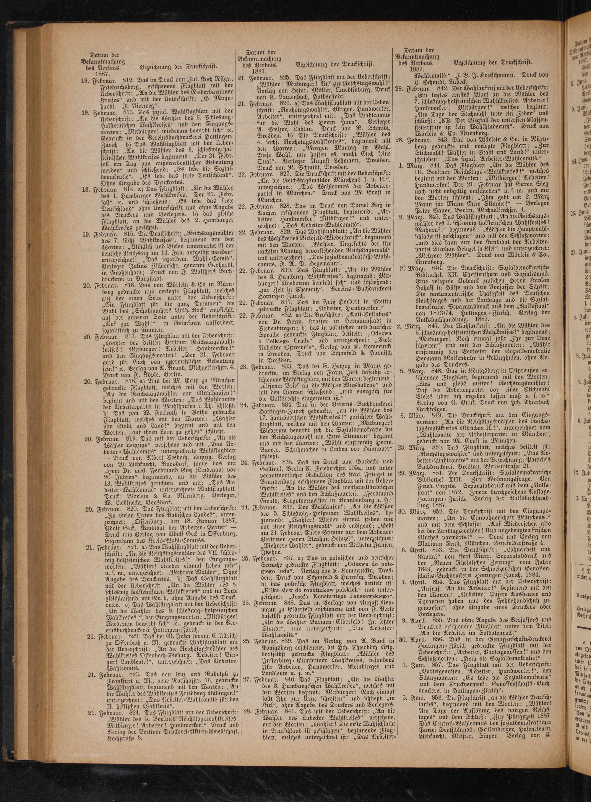 19. Februar. 813. Das sozial. Wahlflugblatt mit der schrift:„Reichstagswähler, Bürger, Handwerker, Handwerker“ Mitbürger!“ welcher beginnt: 9. Juni.
