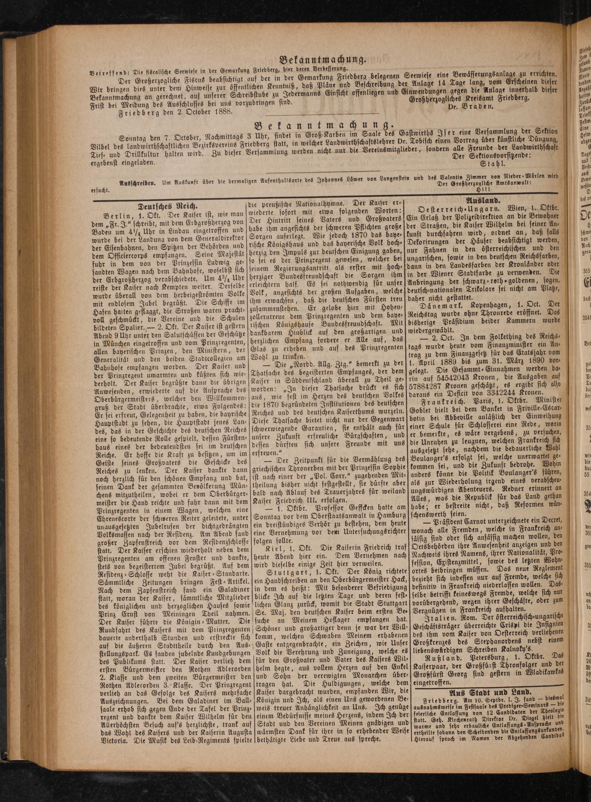 Friedberg den 2. October 1888.