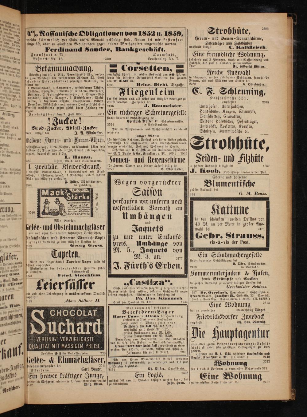 Offerten sub N. S. 1345 befördern Daasenstein und Vogler, Frankfurt a. M.(H. 63481.) 2440