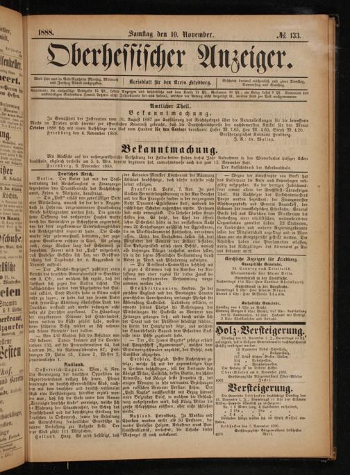 Macht im Frieden wird Friedberg den 6. November 1888.