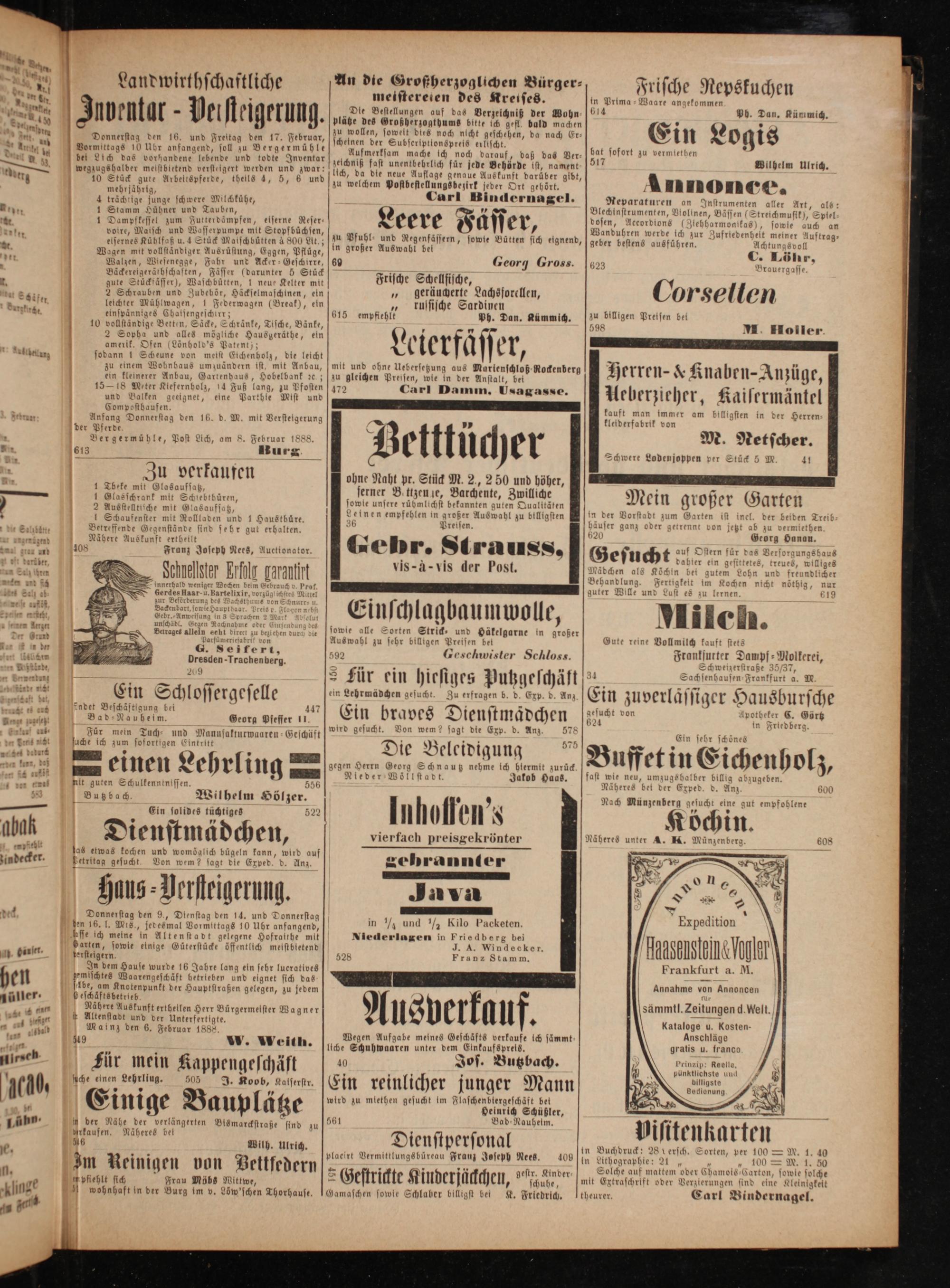 Nähere Auskunft erthellen Herr Bürgermelster Wagner i Altenstadt und der Unterfertigte. Mainz den 6. Februar 1888.