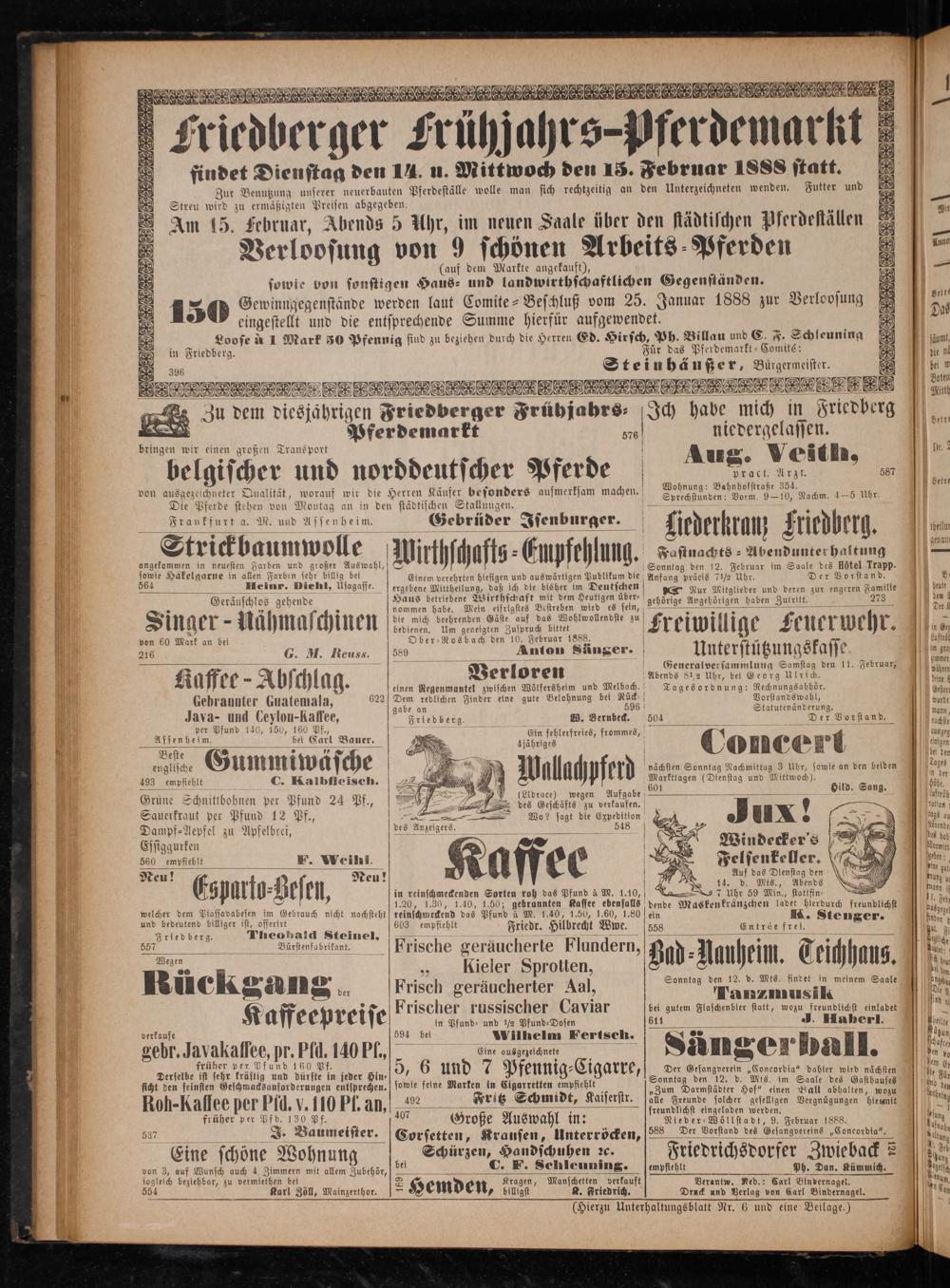 Verantw. Ned.: Carl Bindernagel. Druck und Verlag von Carl Bindernagel.
