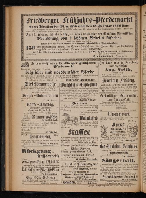 Am 15. Februar, Abends 5 Uhr, im neuen Saale über den städtischen Pferdeställen