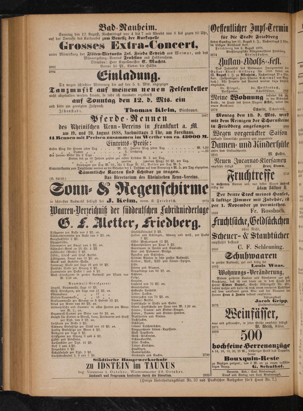findet Samstag den 11. August d. J., Nachmittags 2 Uhr, im hiesigen Rathhaus statt. Friedberg den 9. August 1888. Großherzogliche Bürgermeisterei Friedberg. Steinhäußer.