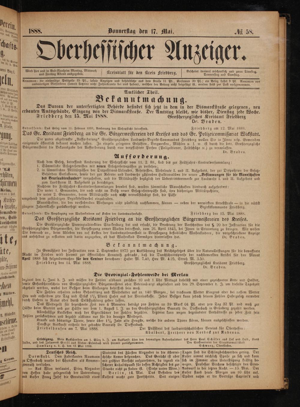 n Friedberg den 14. Mai 1888. Großherzogliches Kreisamt Friedberg.