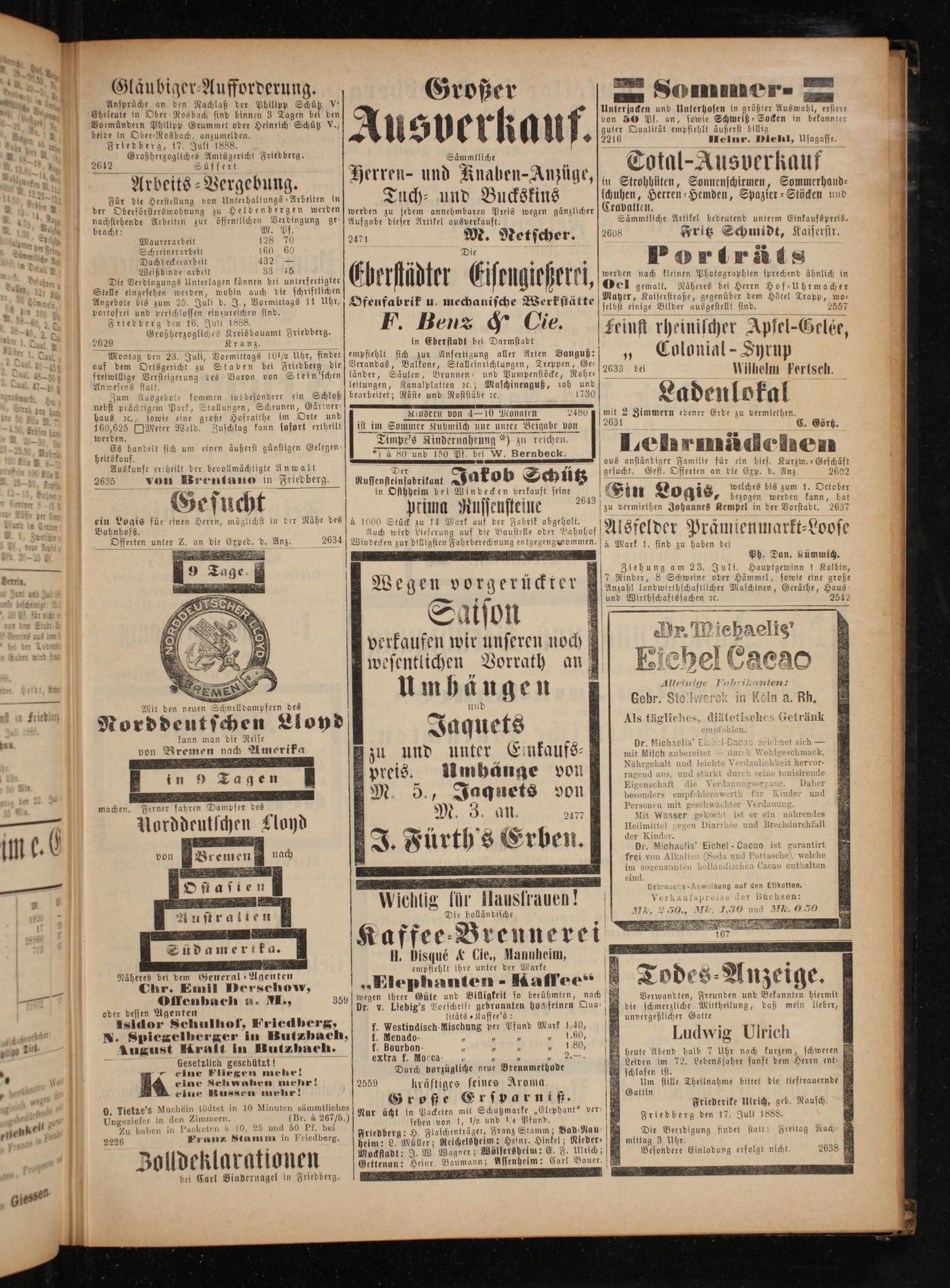 Frledberg den 17. Juli 1888. Die Beerdigung findet statt:
