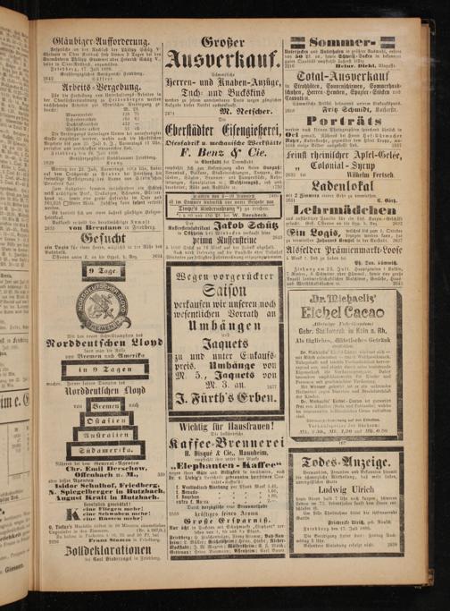 N— ö 7 7 Cotal-Ausverkauf in Strohhüten, Sonnenschirmen, Sommerhaud⸗ schuhen, Herren⸗-Hemden, Spazier⸗-Stöcken und Cravatten. Sämmtliche Artikel bedeutend unterm Einkaufspreis.