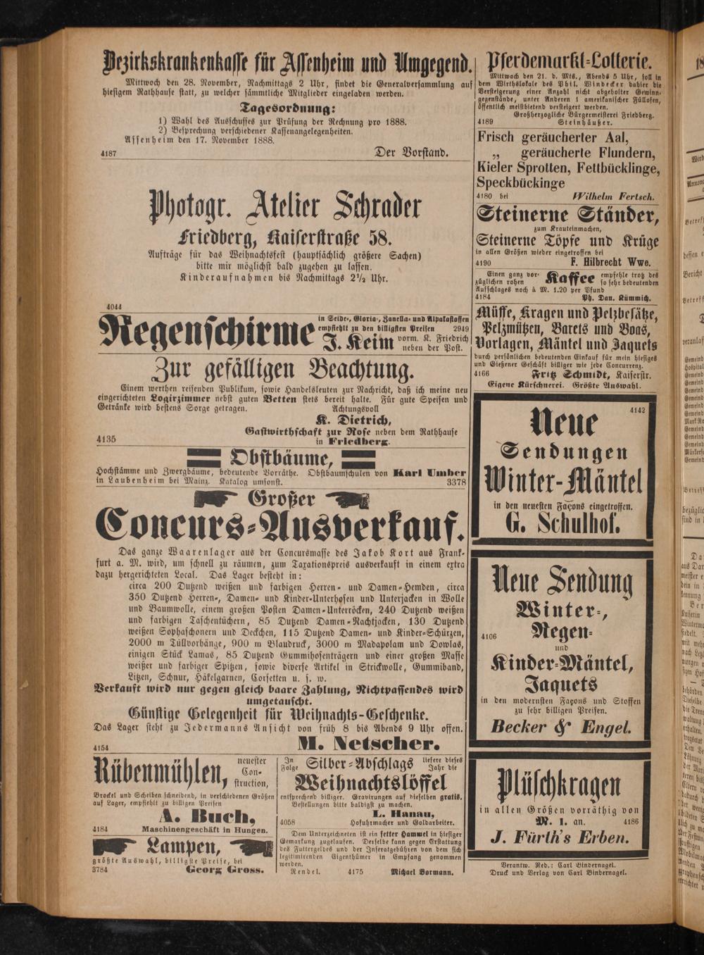 des Futtergeldes und der Inseratgebühren von dem sich CC legitimirenden Eigenthümer in Empfang genommen größte Auswahl, billigste Pretse, bel werden. Verantw. Red.: Carl Bindernagel.