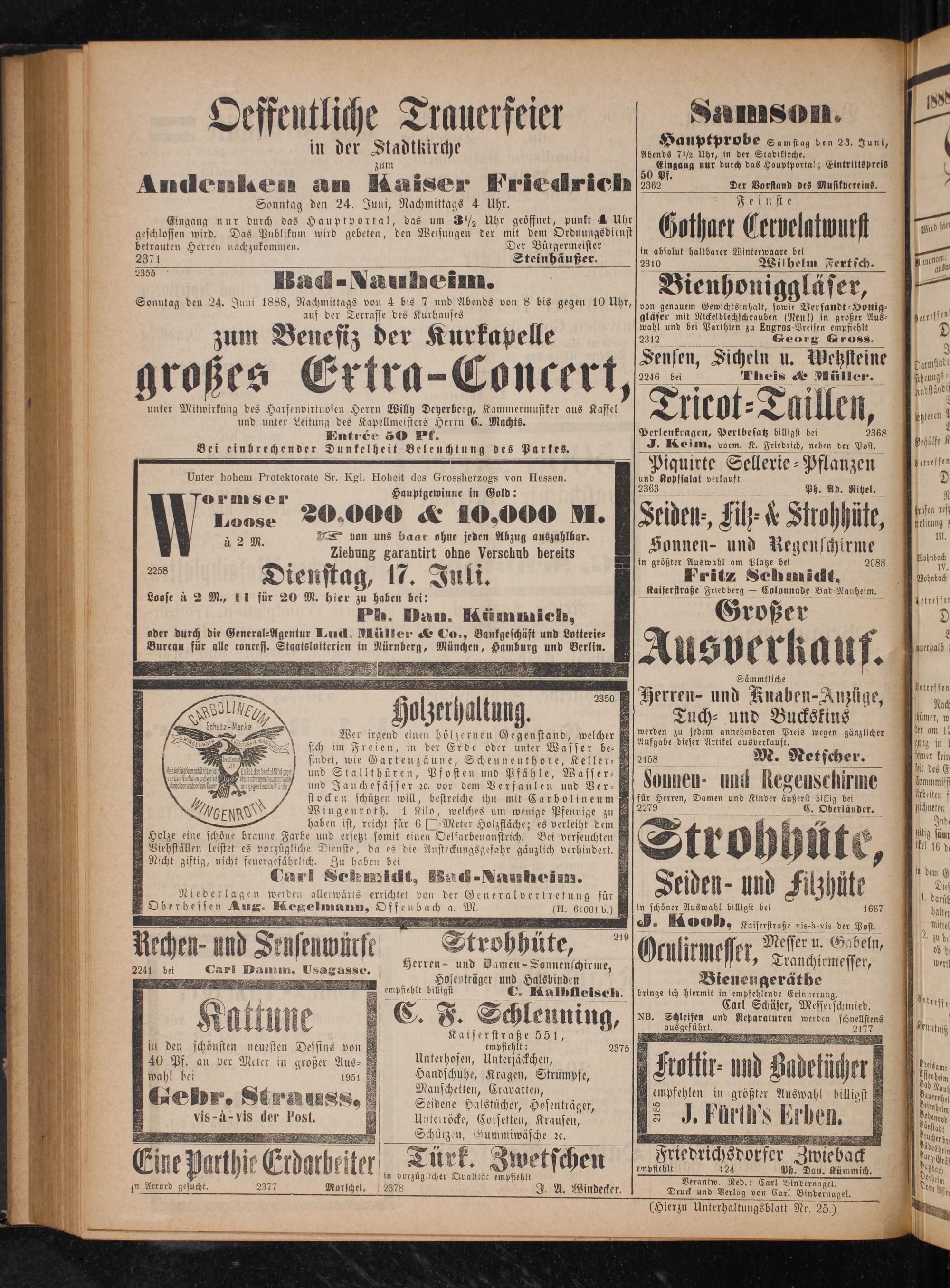 2355 5. 2 Bad- Nauheim. Sonntag den 24. Juni 1888, Nachmittags von 4 bis 7 und Abends von 8 bis gegen 10 Uhr auf der Terrasse des Kurhauses