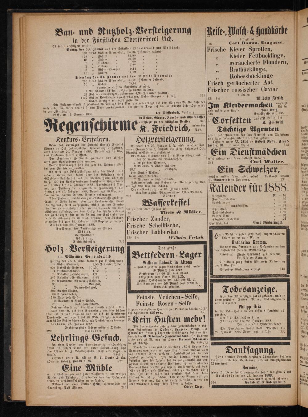 in der„Meilbach“. Lich, am 16. Jaruar 1888.