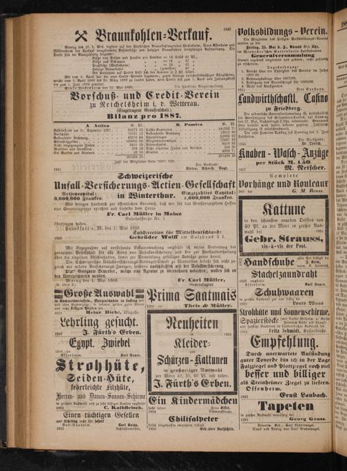 Mainz den 1. Mai 1888. Fr. Carl Müller,