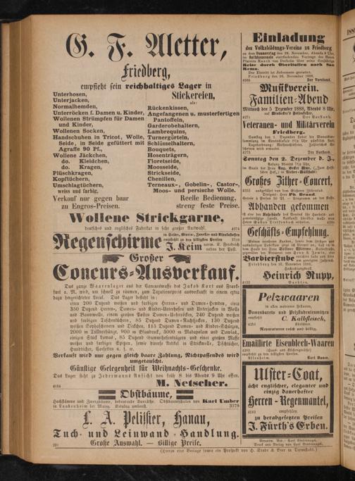 Barbierstube um geneigten Zuspruch. Friedberg den 16. November 1888. Hochachtungsvoll