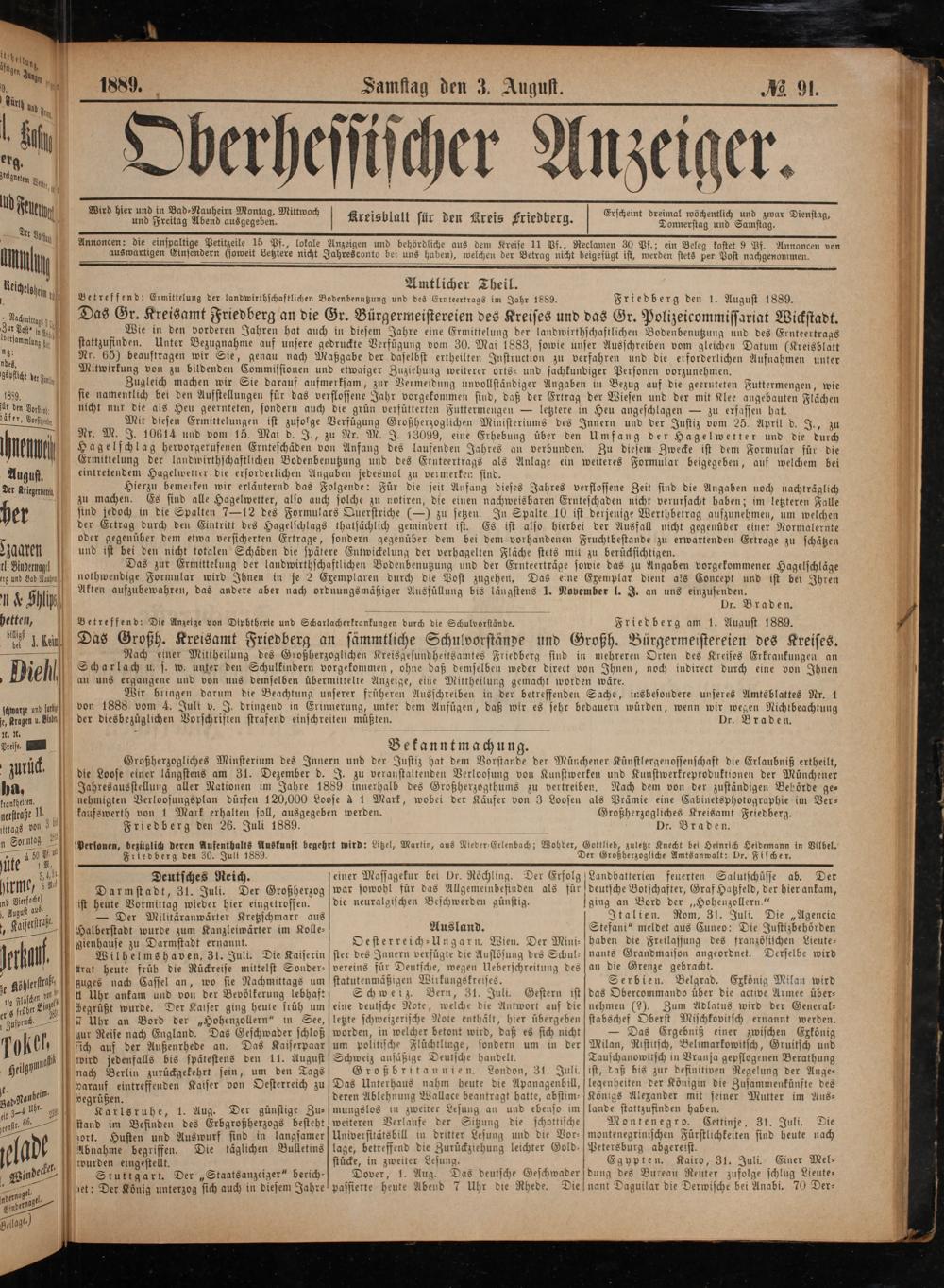 Friedberg den 30. Juli 1889.