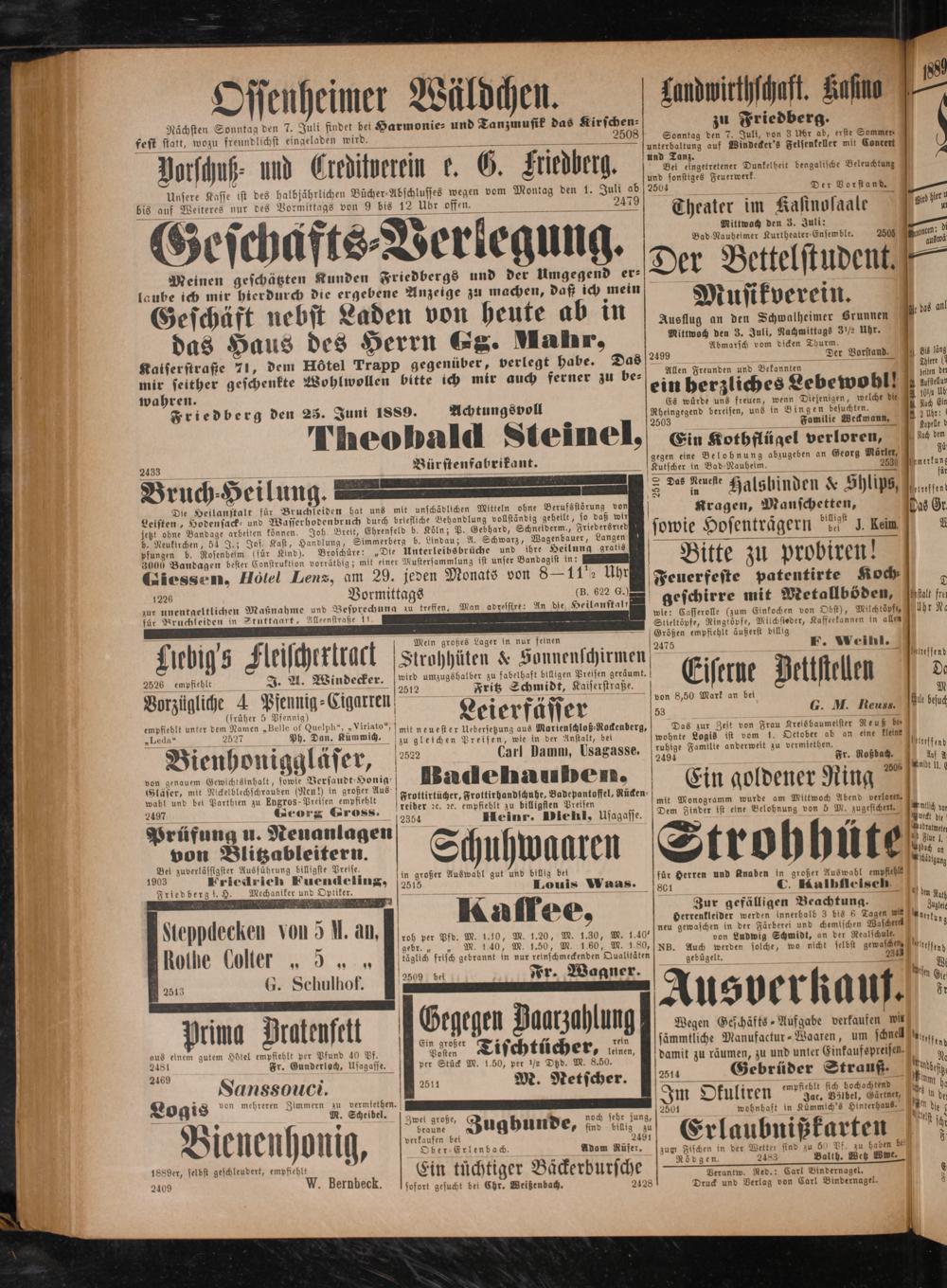 2409 W. Bernbeck. sofort gesucht bei Chr. Weißenbach. 2428 Druck und Verlag von Carl Bindernagel. 0