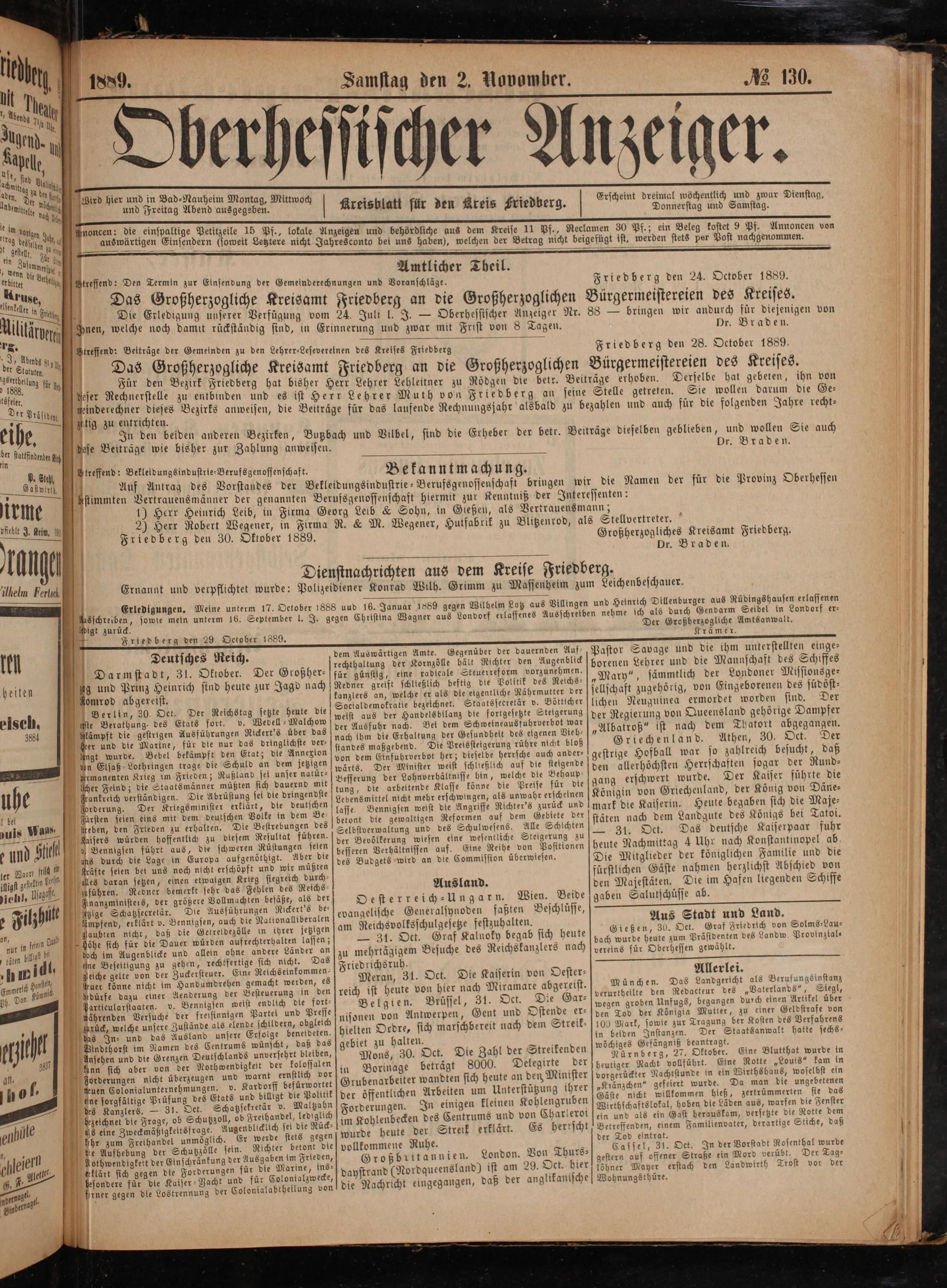1 Friedberg den 29. Oetober 1889.
