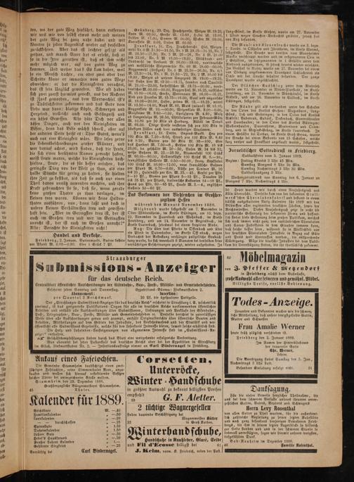 Frau Amalie Werner heute früh plötzlich verschieden ist. Friedberg den 2. Januar 1889.