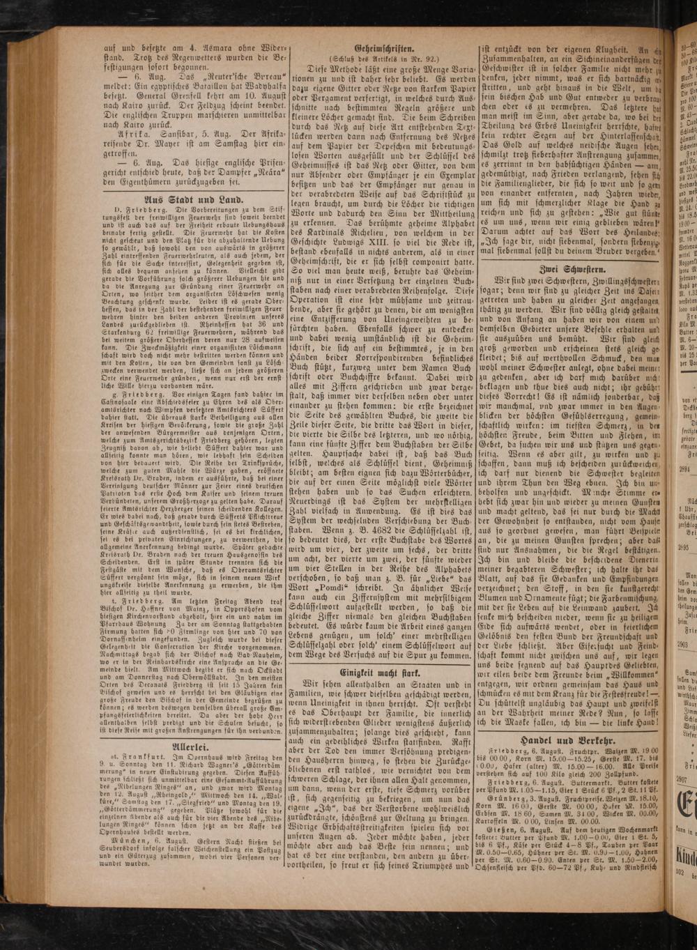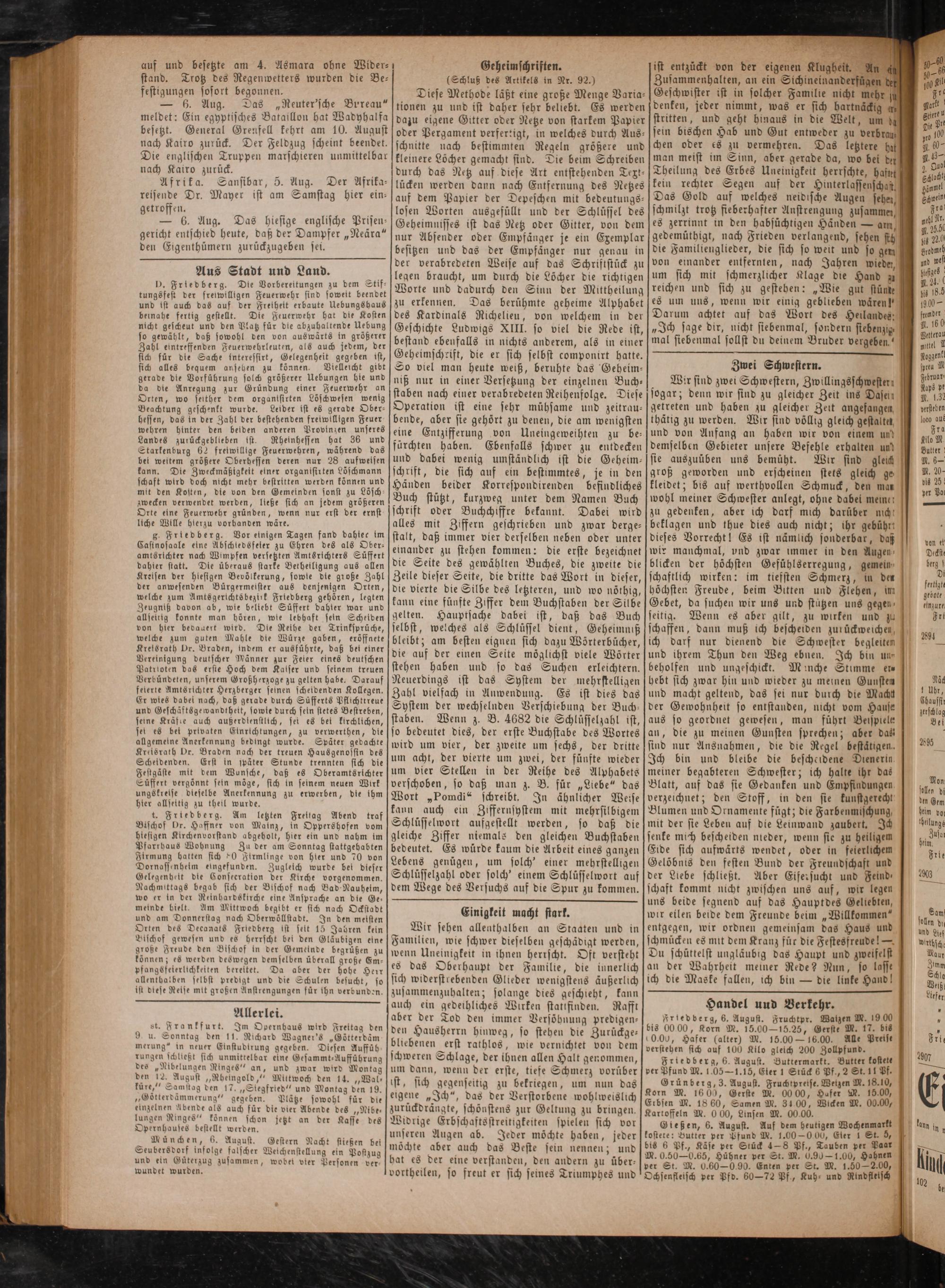 Friedberg, 6. August. Buttermarkt. Butter kostete ver Pfund M. 105— 1.15, Eier 1 Stück 6 Pf., 2 St. 11 Pf.