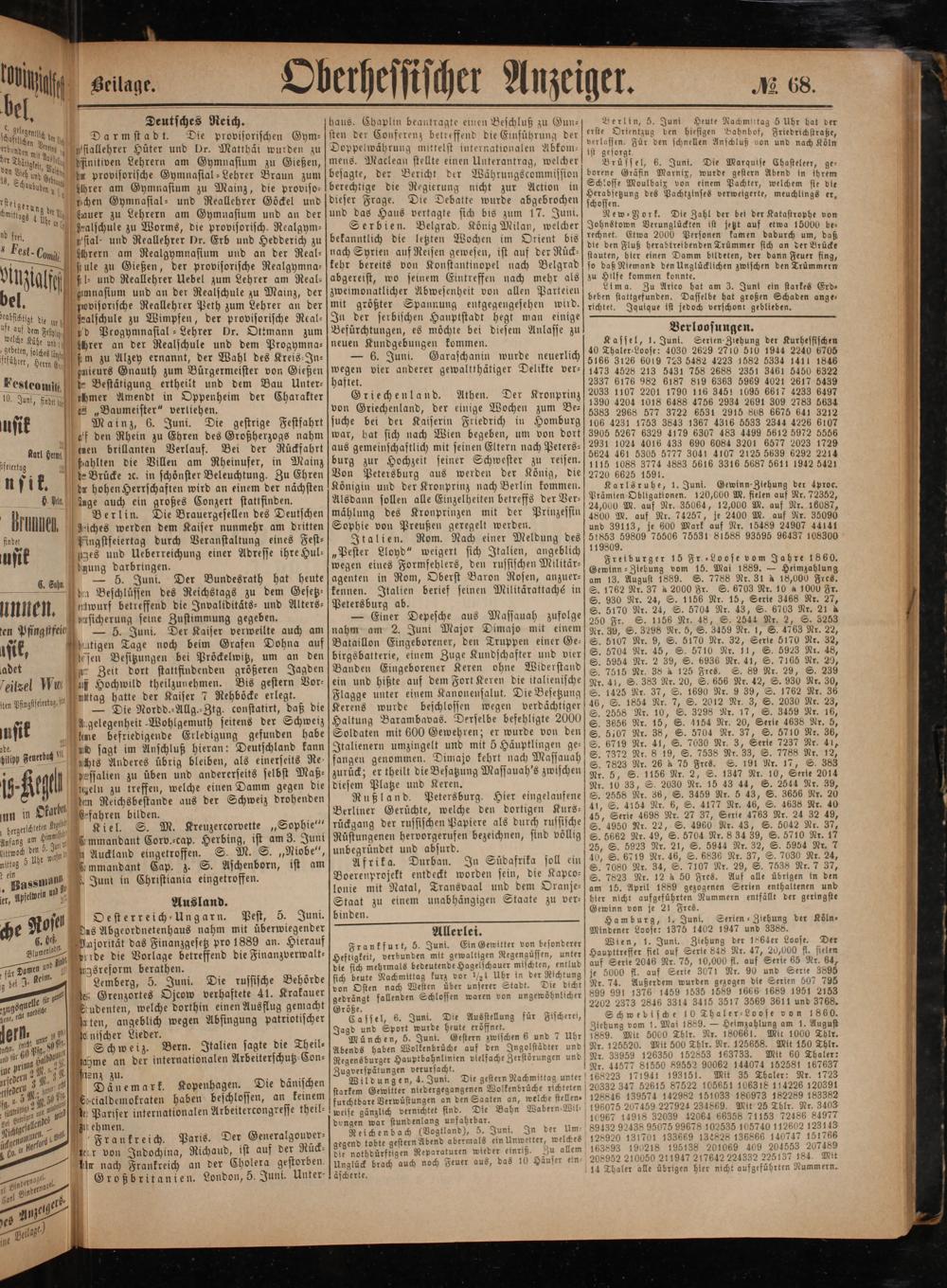Wien, 1. Juni. Ziehung der 1864er Loose. Der Haupttreffer fiel auf Serie 848 Nr. 47, 20,000 fl. fielen auf Serie 2046 Nr. 75, 10,000 fl. auf Serie 65 Nr. 64, je 5000 fl. auf Serie 3071 Nr. 90 und Serie 3895 Nr. 74. Außerdem wurden gezogen die Serien 507 795 899 991 1376 1459 1535 1589 1666 1689 1951 2153 2202 2373 2846 3314 3415 3517 3569 3611 und 3768.