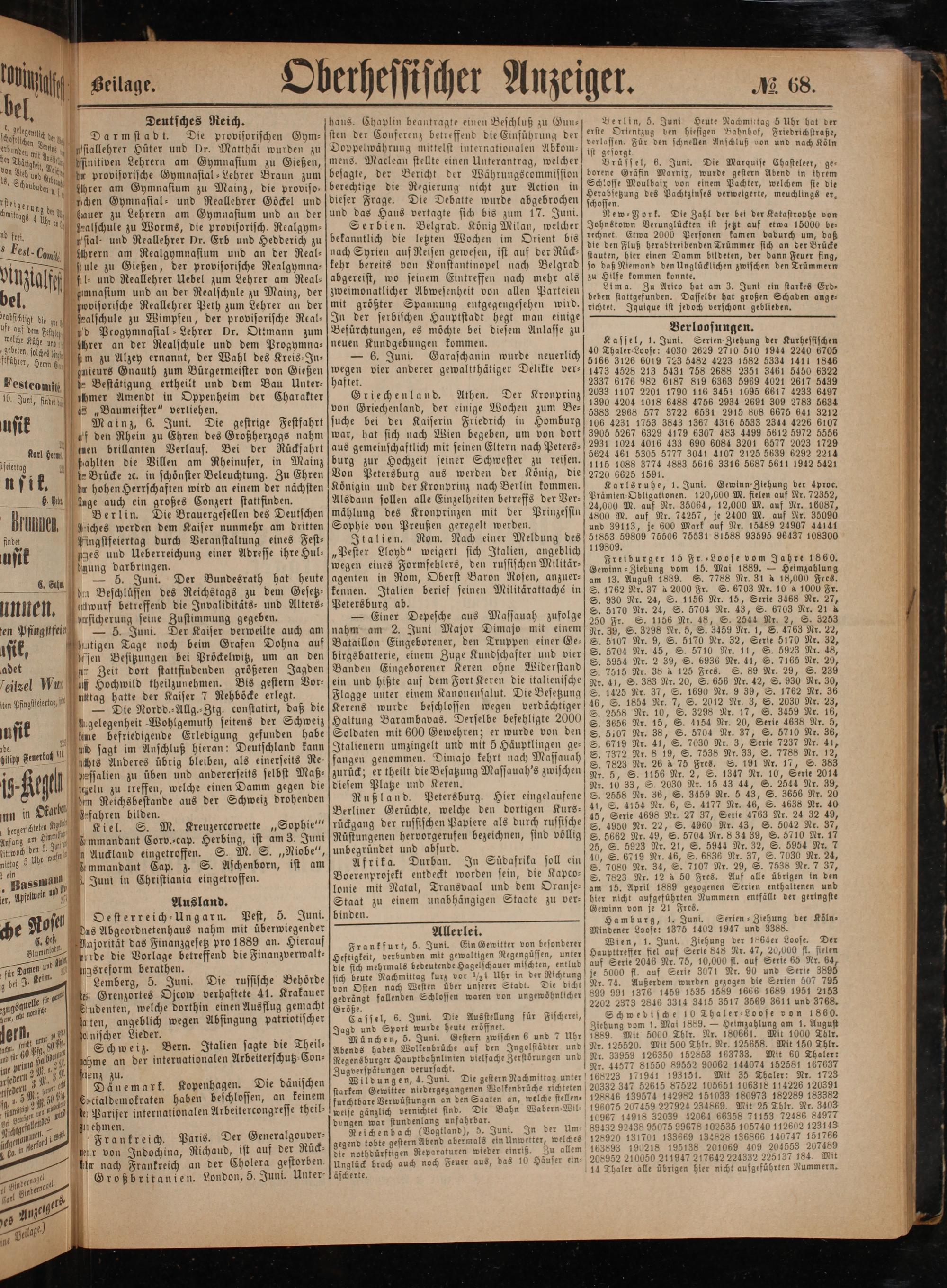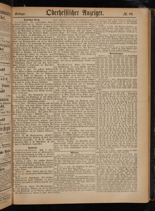 von Osten nach Westen über unserer Stadt. Die dicht gedrängt fallenden Schlossen waren von ungewöhnlicher Größe.. Cassel, 6. Juni. Die Ausstellung für Fischerei, Jagd und Sport wurde heute eröffnet.