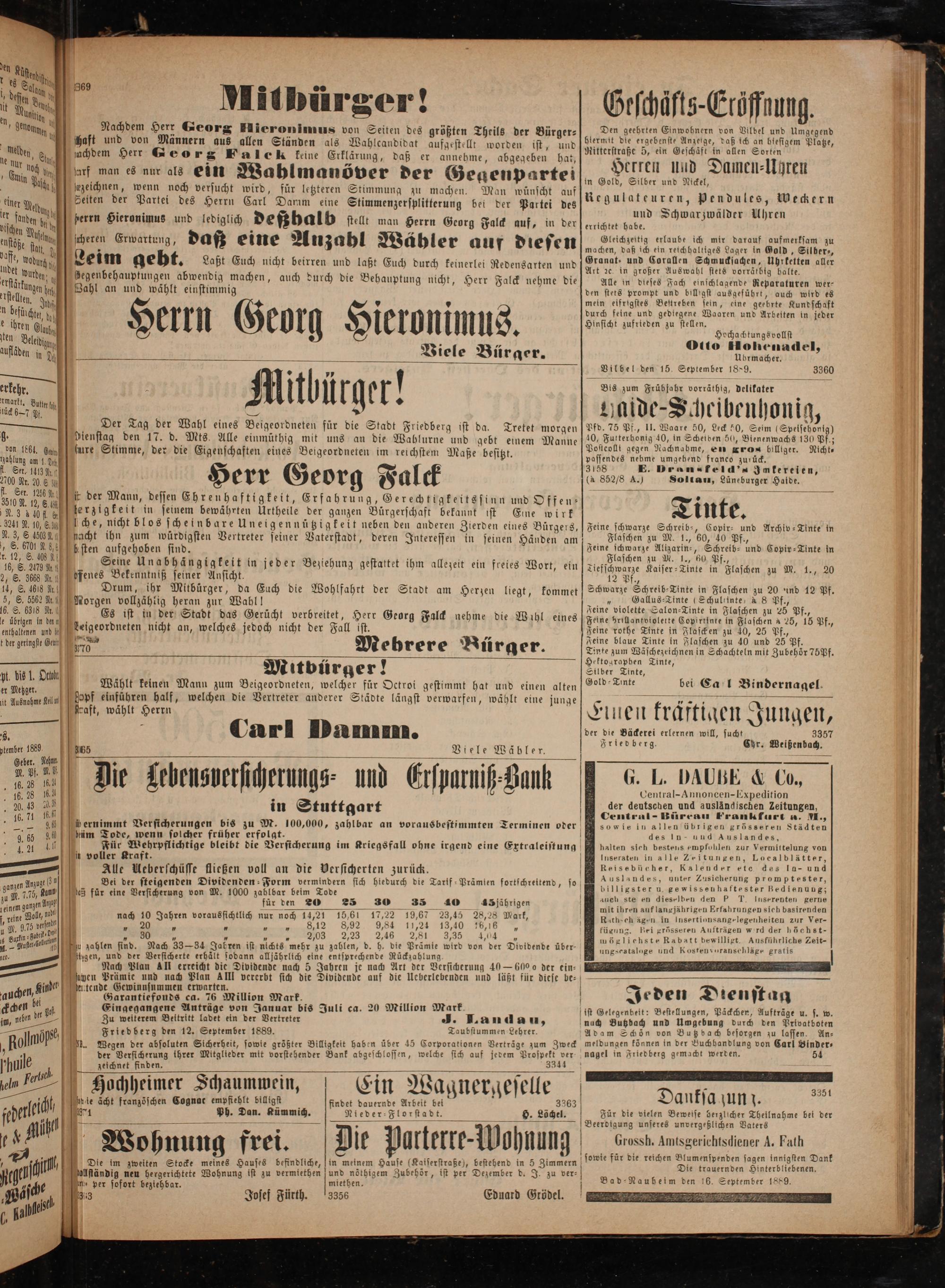 2 77 0 . ithürger e. uck 6— Pf.— , Der Tag der Wahl eines Beigeordneten für die Stadt Friedberg ist da. Tretet morgen g. Dienstag den 17. d. Mts Alle einmüthig mit uns an die Wahlurne und gebt einem Manne