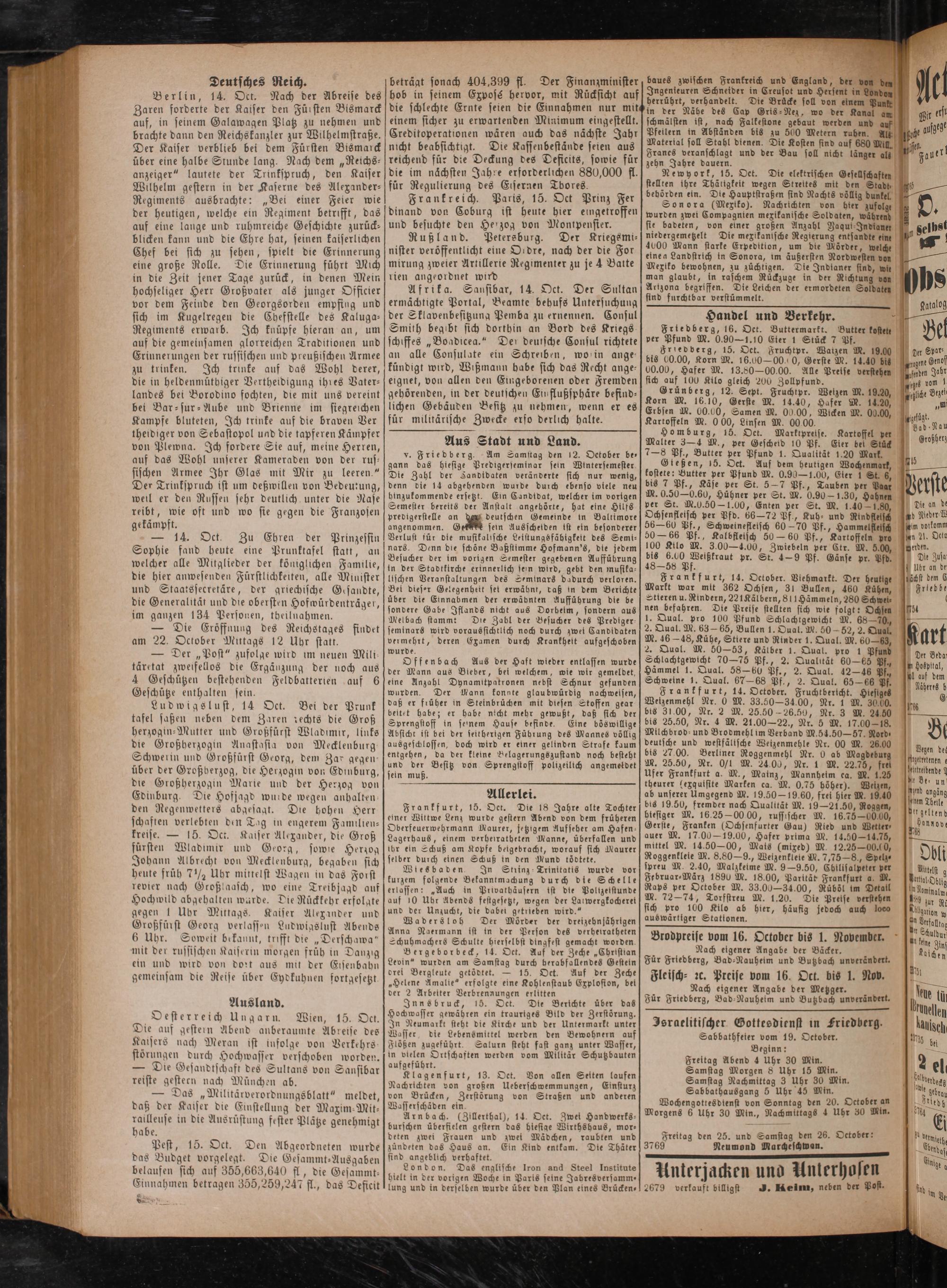 Friedberg, 16. Oct. Buttermarkt. Butter kostett ver Pfund M. 0.90—1.10 Eter 1 Stück 7 Pf.