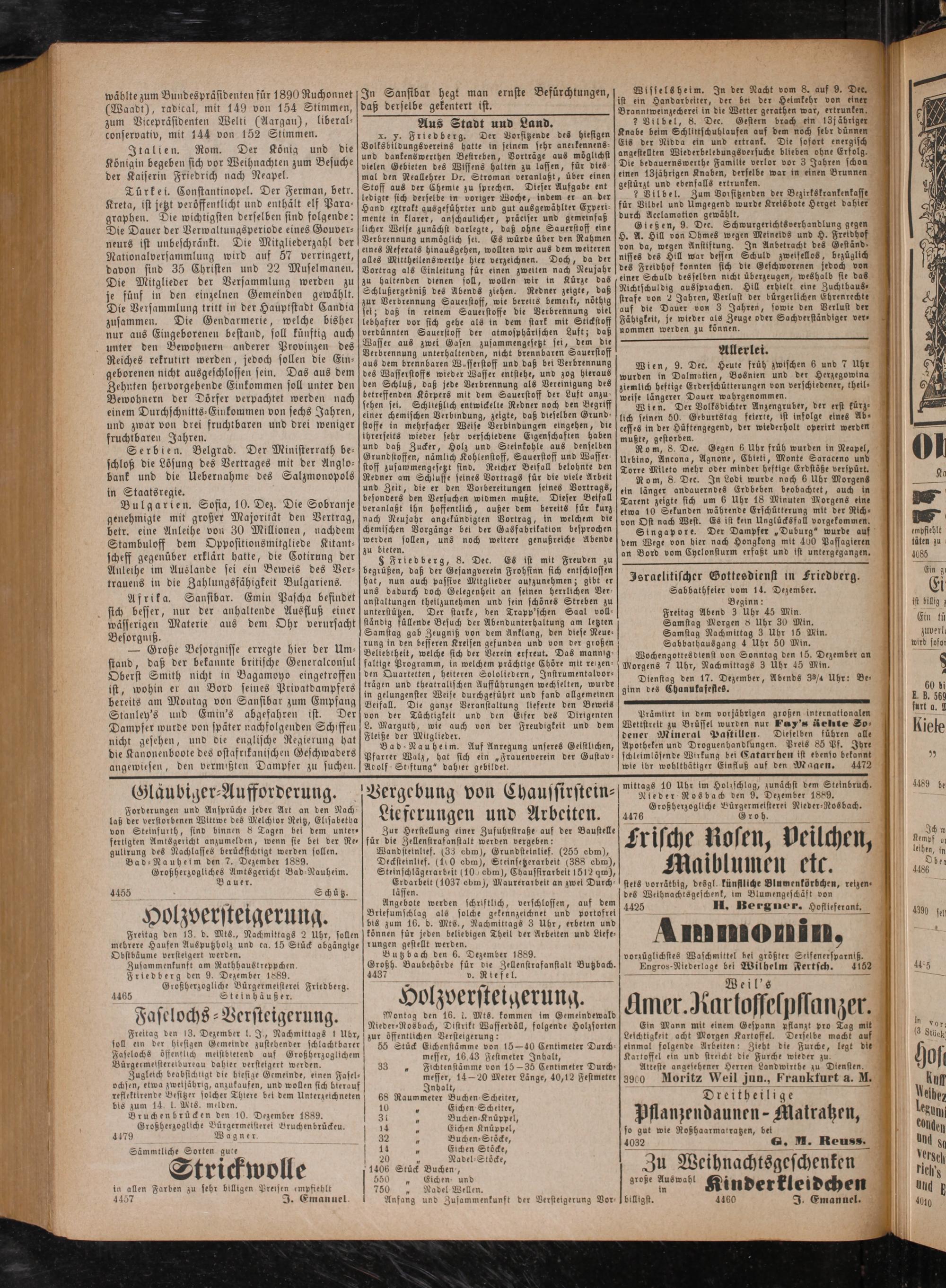 Friedberg den 9. Dezember 1889.