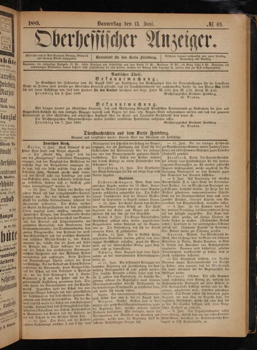 Großherzogliches Kreisamt Friedberg. Dr. Braden.